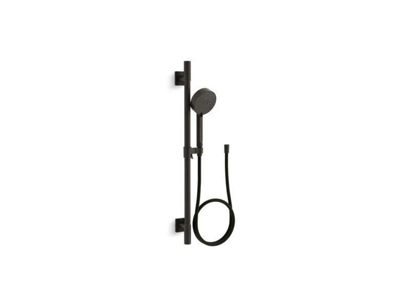 This all-in-one kit includes the Awaken G110 multifunction handshower, a 24-inch slidebar, and a 60-inch smooth hose. Advanced spray performance delivers four distinct sprays - wide coverage, intense drenching, targeted massage, or reduced-flow spray - with a smooth rotation of a thumb tab. Ergonomic design makes for superior comfort and ease of use, with ideal balance and weight in the hand. The artfully sculpted sprayface reveals simple, architectural forms that complement contemporary and minimalist baths.